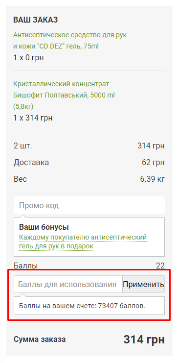 Воспользоваться баллами
