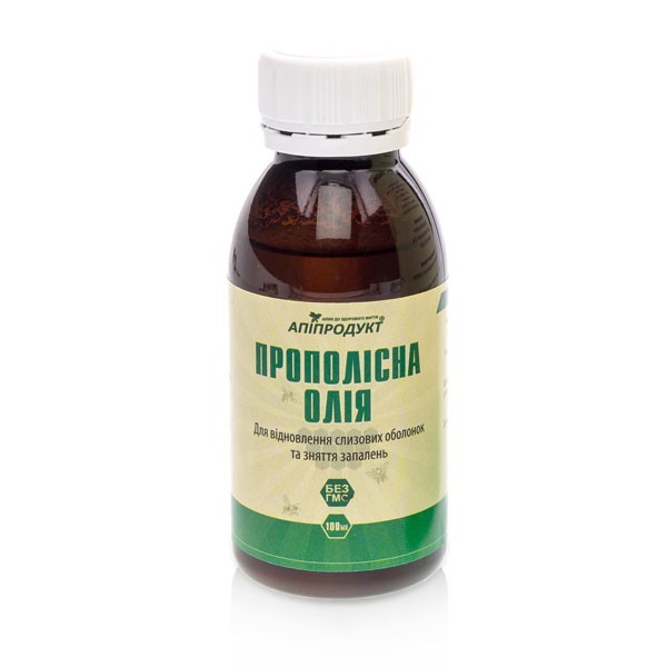 Очищен от механических смесей и воска прополис, оливково-подсолнечное масло.