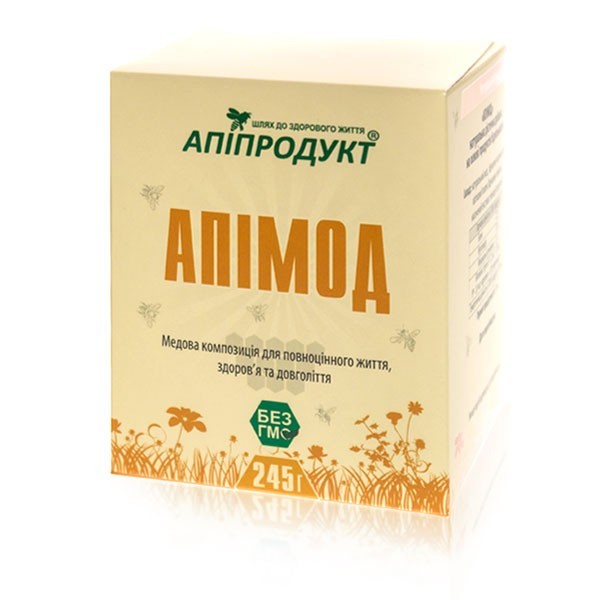 ​​​​«Апімод» - це важлива дієтична добавка до раціону харчування для отримання цінних біологічно активних речовин, які мають імуностимулюючі, протизапальні та бактерицидні властивості. Через деякий час застосування «Апімод» покращується самопочуття, стабілізується артеріальний тиск, зникає головний біль, оновлюється організм, «Апімод» попереджає передчасне старіння, нормалізує обмін речовин, знімає вегетативні та психічні розлади при клімаксі.