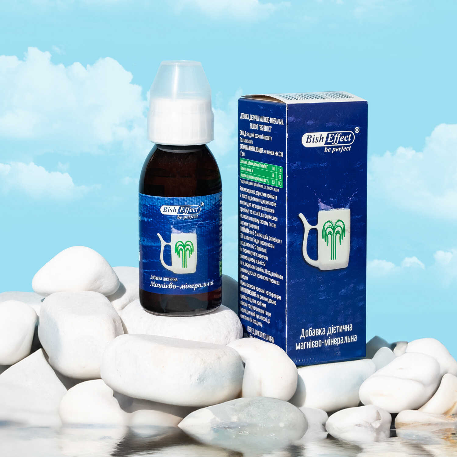 Питний бішофіт — це дієтична добавка, що містить магній у формі магнію хлориду, природного походження. Призначений для використання як додаткове джерело магнію в раціоні харчування дорослих. Формула продукту дозволяє зручно і поступово збагачувати раціон необхідними мінералами, особливо у випадках, коли потреба в них зростає (активний спосіб життя, незбалансоване харчування, сезонні зміни). Завдяки рідкій формі, добавку можна легко дозувати та використовувати як частину щоденного вживання питної води. Вона підходить для осіб, які прагнуть доповнити свій раціон мінеральними речовинами, що надходять із природних джерел.