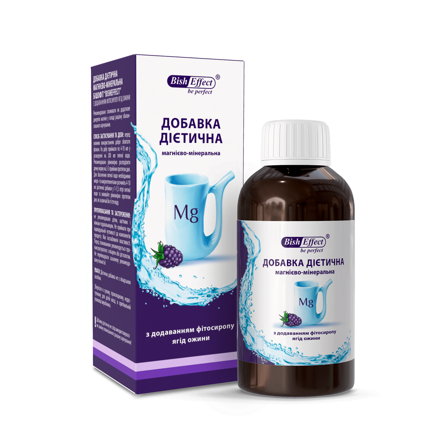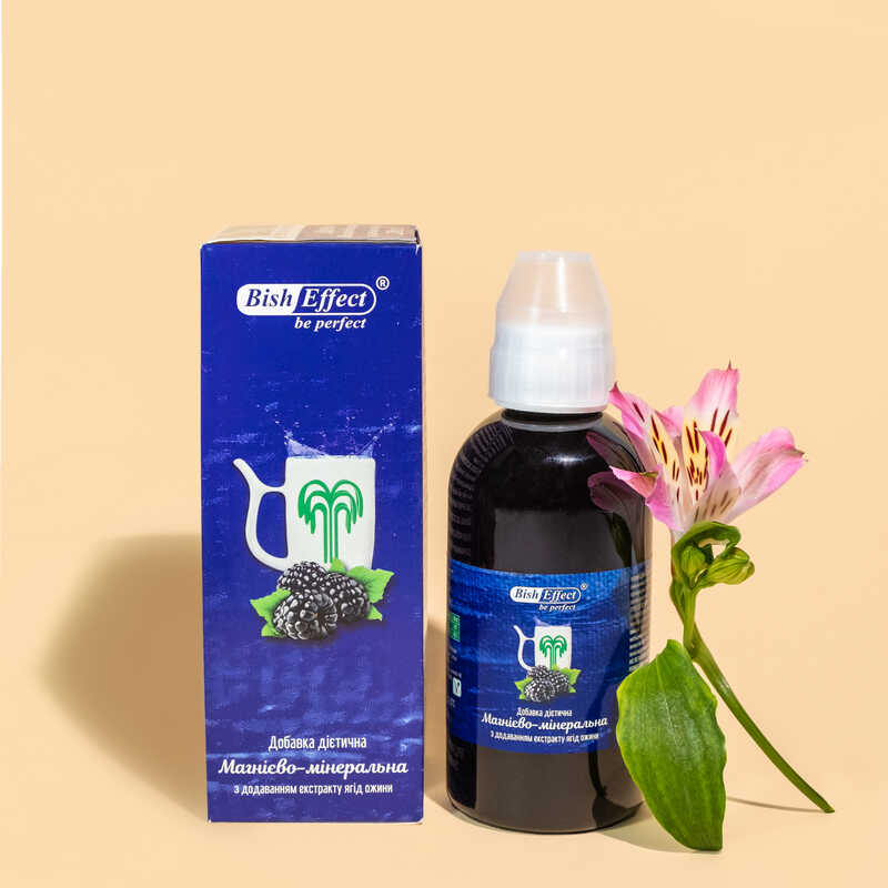 Питний бішофіт з екстрактом ягід ожини — це дієтична добавка, що містить магній у формі магнію хлориду, а також екстракт ожини як джерело натуральних біологічно активних речовин. Продукт розроблений для використання як додаткове джерело магнію у раціоні харчування дорослих. Поєднання мінерального складу бішофіту та ягідної основи дозволяє не лише урізноманітнити щоденне споживання рідини, а й доповнити його компонентами рослинного походження, які є природною частиною харчового раціону.