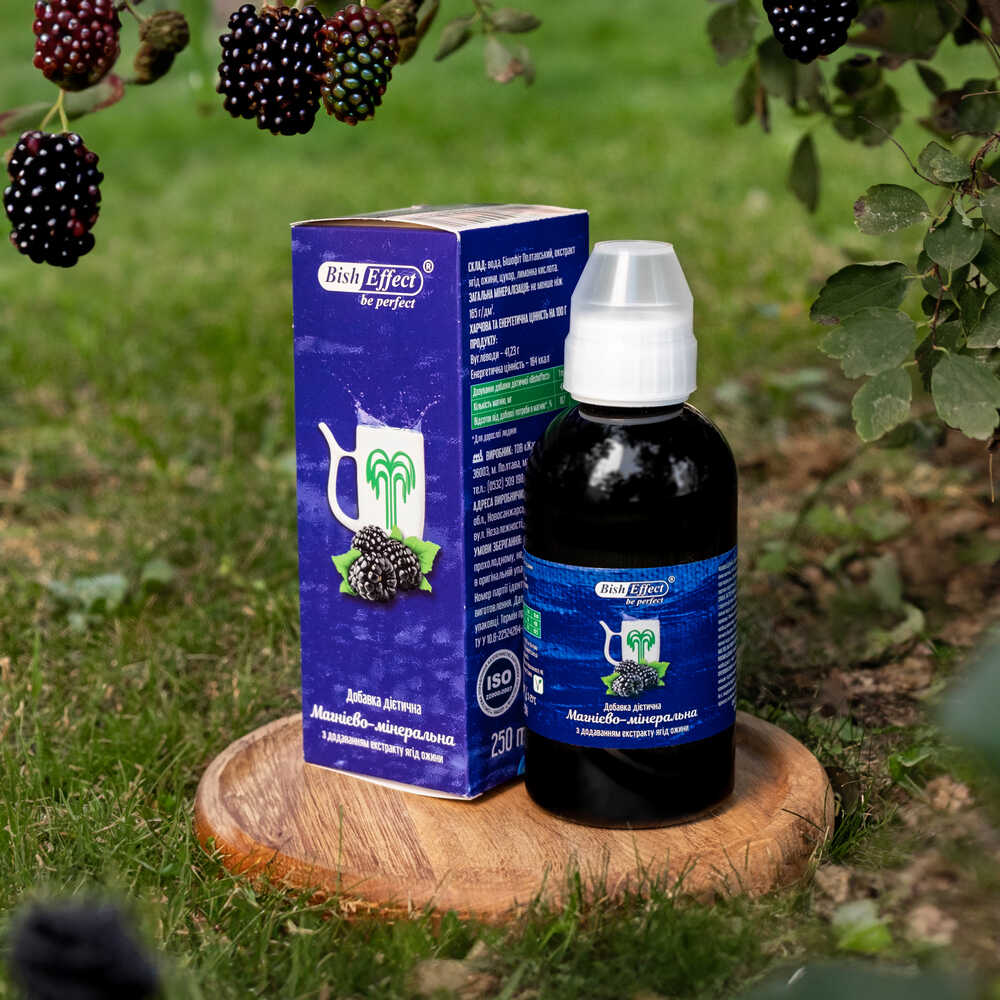 Питний бішофіт з додаванням фітосиропу ягід ожини. Добавка дієтична магнієво-мінеральна, 250 ml