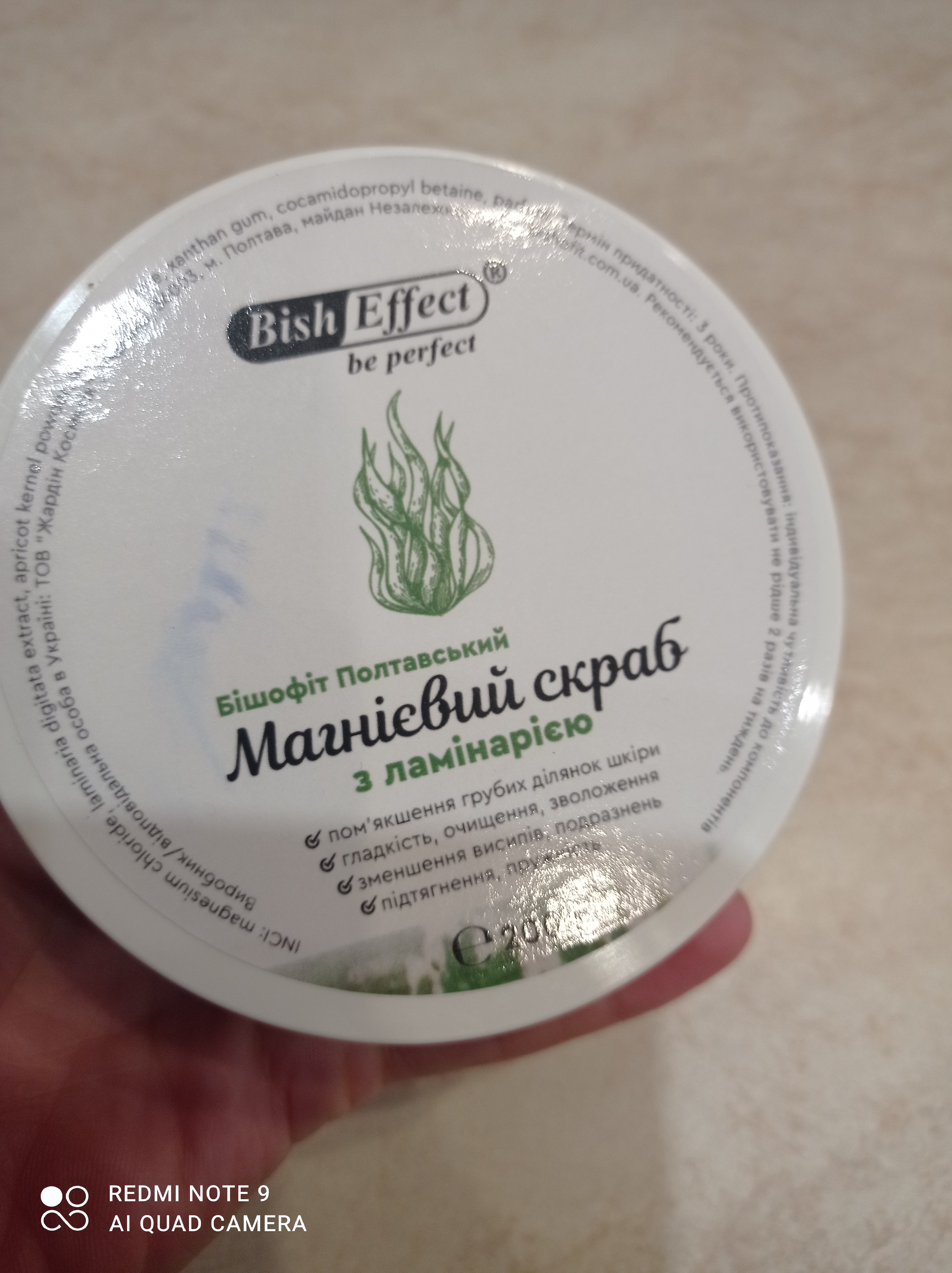 Дуже класний скраб, повз кристалики солі містить у собі дуже дрібні частинки абрикосових кісточок, які допомагають у скрабуванні після того, як сіль розтане. Переживала, що аромат може бути не дуже приємний, як у багатьох засобів з водоростями, але ні, запах дуже класний. Коли скраб закінчиться куплю ще якийсь на пробу. До покупки рекомендую, шкіру не дряпає, допомагає прибрати лущення