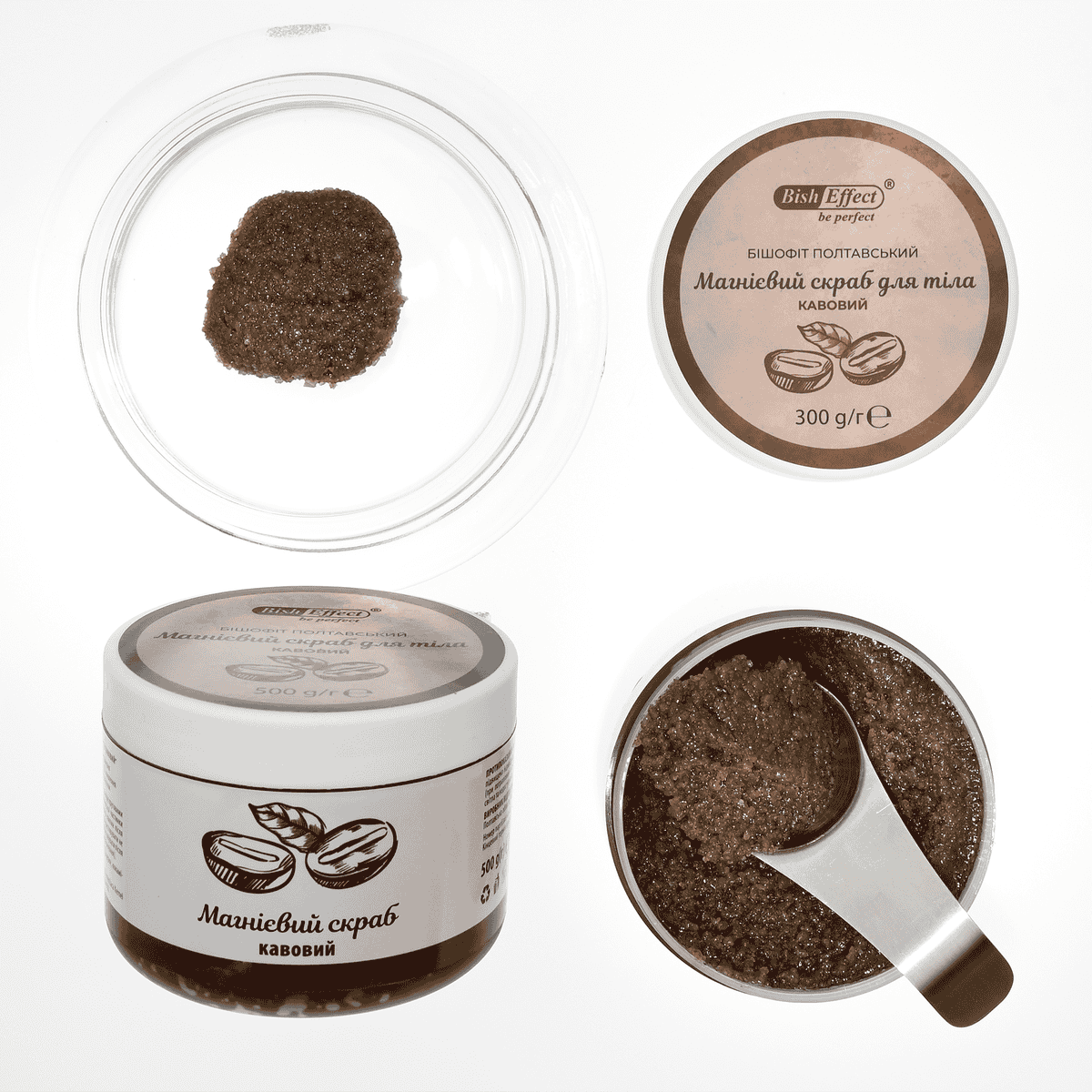 Магнієвий скраб для тіла з ароматом кави Бішофіт Полтавський, 300 г