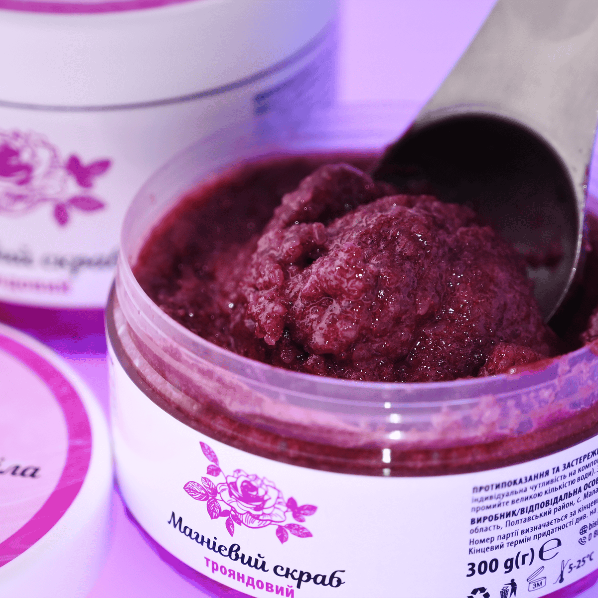 Сподобалась текстура скрабу, не травмує шкіру, має приємний не приторний аромат, відразу відчувається дія магнію: легке поколювання і тепло. Хочу спробувати ще з ароматом кави. Буду замовляти ще.