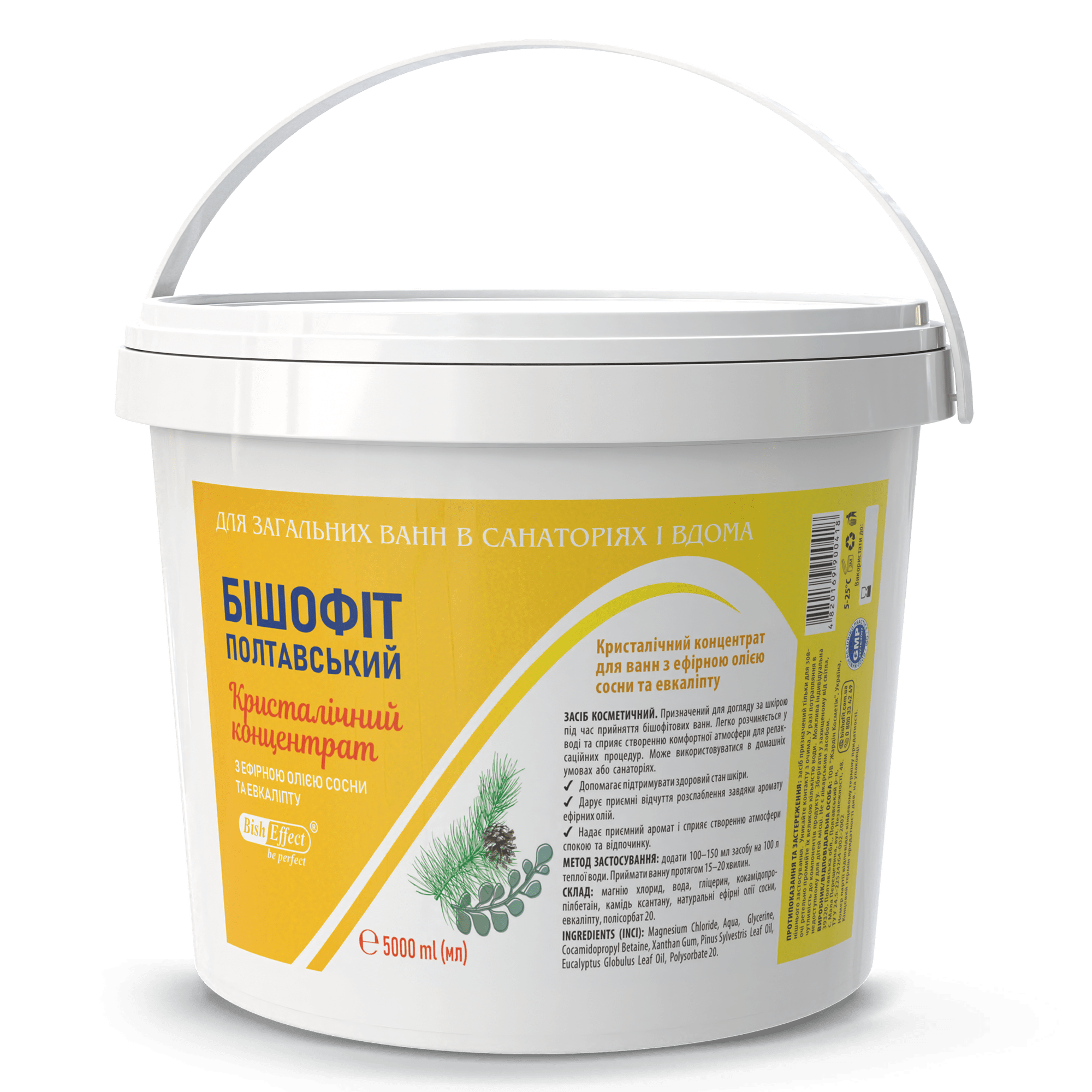 Кристалічний концентрат для ванн з ефірною олією сосни та евкаліпту Бішофіт Полтавський, 5000 ml (5,5кг)