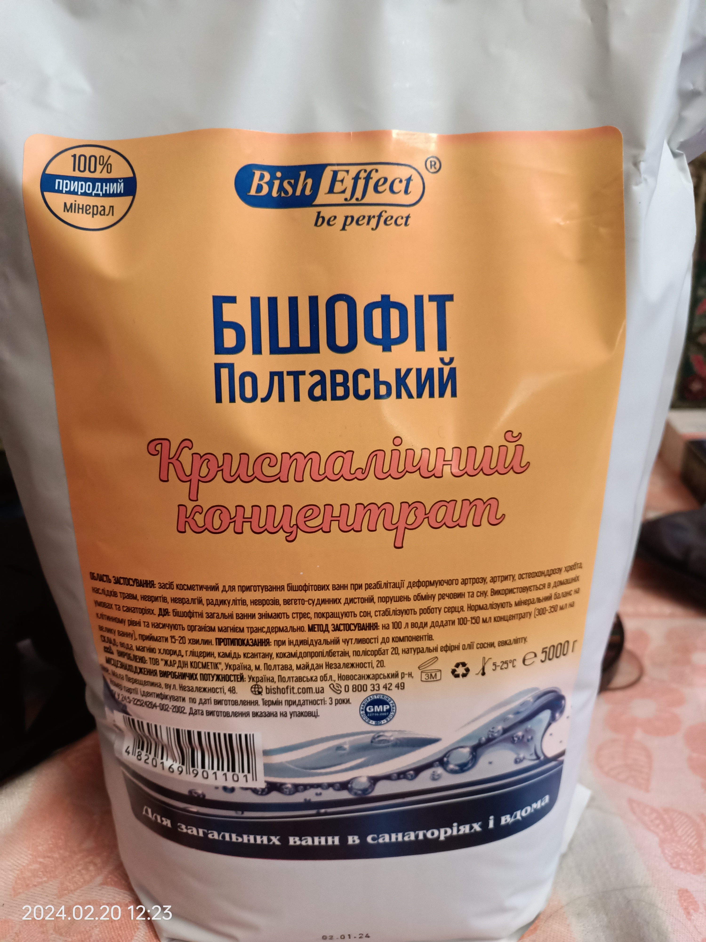 Купую полтавський бішофіт вже не вперше, дуже дієвий та ефективний засіб. Зменшую біль при артрозах, і суттєво зміцнює нервову систему, а це зараз всім необхідно! До війни мали можливість приймати ці ванни у санаторіях Полтавщини. Добре, що наразі можна проходити курс і вдома. Дякую
