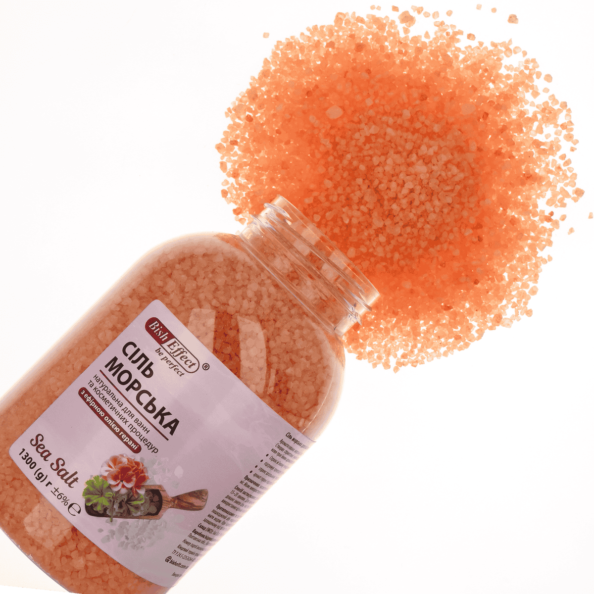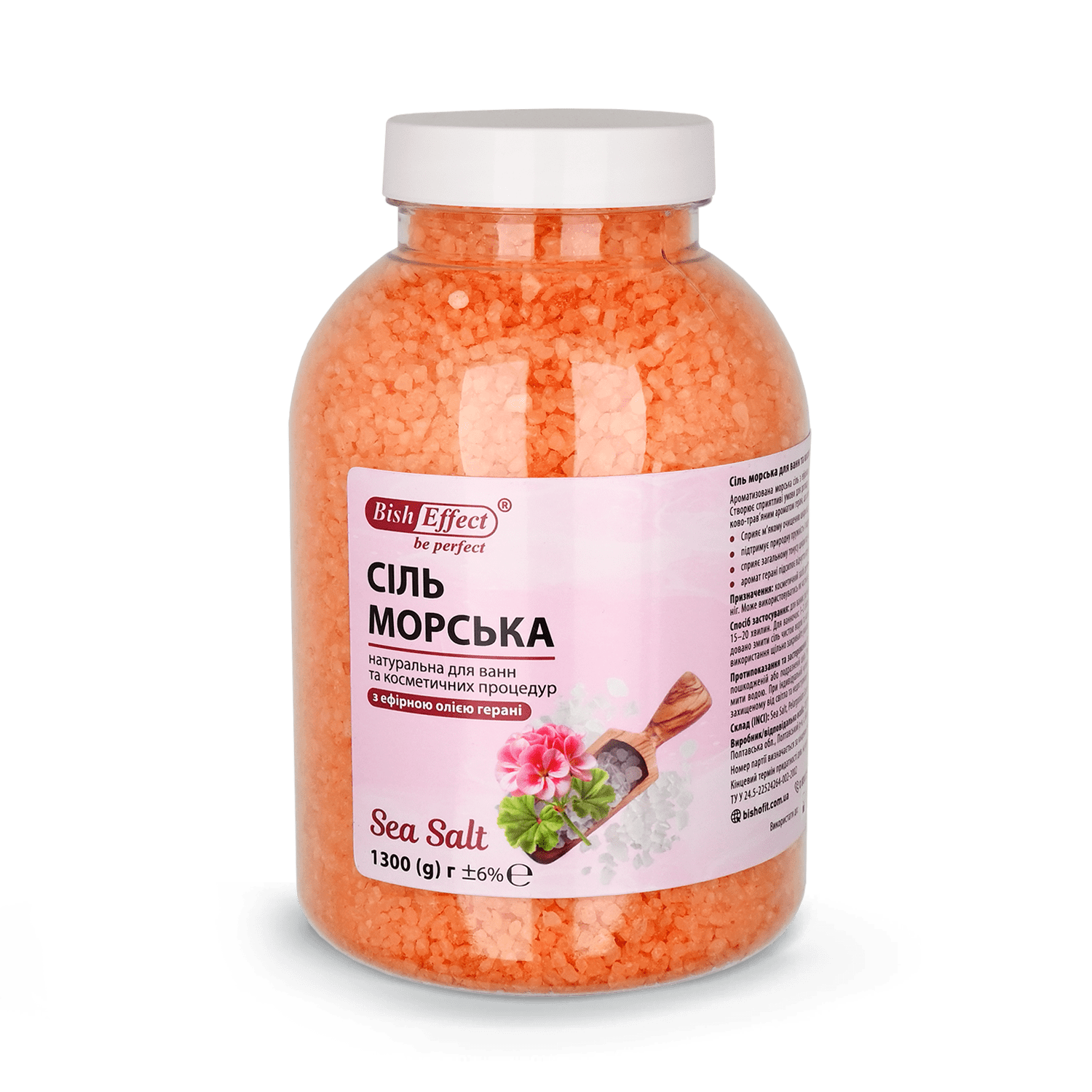 Ароматизована морська сіль з додаванням ефірної олії герані призначена для проведення водних процедур. Завдяки вмісту хлориду натрію, магнію, кальцію та інших мікроелементів, вона забезпечує м’яку ексфоліацію, не травмуючи шкірний покрив. Засіб створює сприятливі умови для догляду за шкірою, поєднуючи очищувальну дію морської солі з квітково-трав’яним ароматом герані, що робить щоденні ритуали догляду приємними та комфортними.