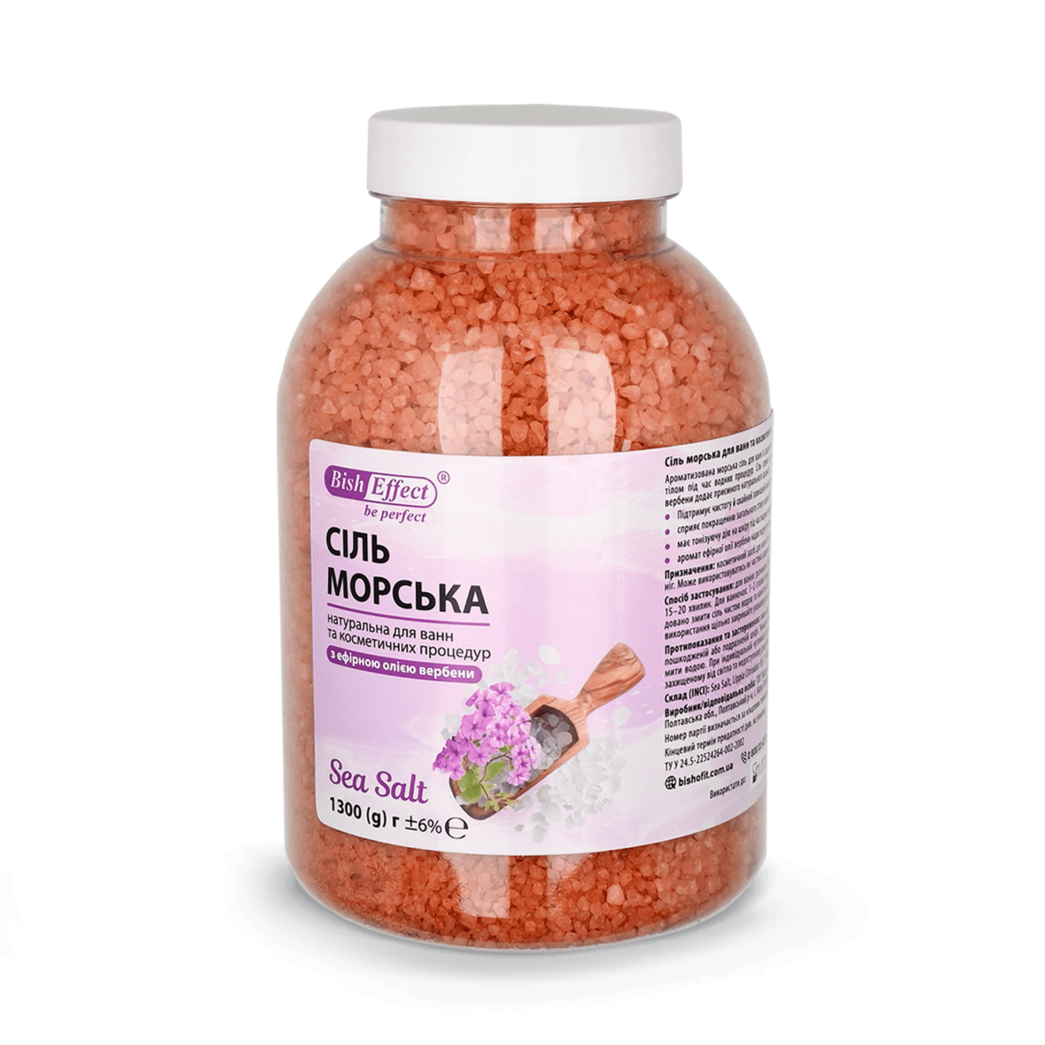 Косметичний засіб із додаванням ефірної олії вербени — це засіб для догляду за тілом під час водних процедур. Сіль сприяє дбайливому впливу на шкіру, а витончений аромат вербени додає процедурам приємного природного відтінку. Морська сіль є джерелом природних мінералів, зокрема хлориду натрію, магнію, кальцію та калію, які підтримують нормальний стан шкіри. У процесі водних процедур вона створює м’яке середовище, що полегшує очищення шкіри від поверхневих забруднень без пересушування.