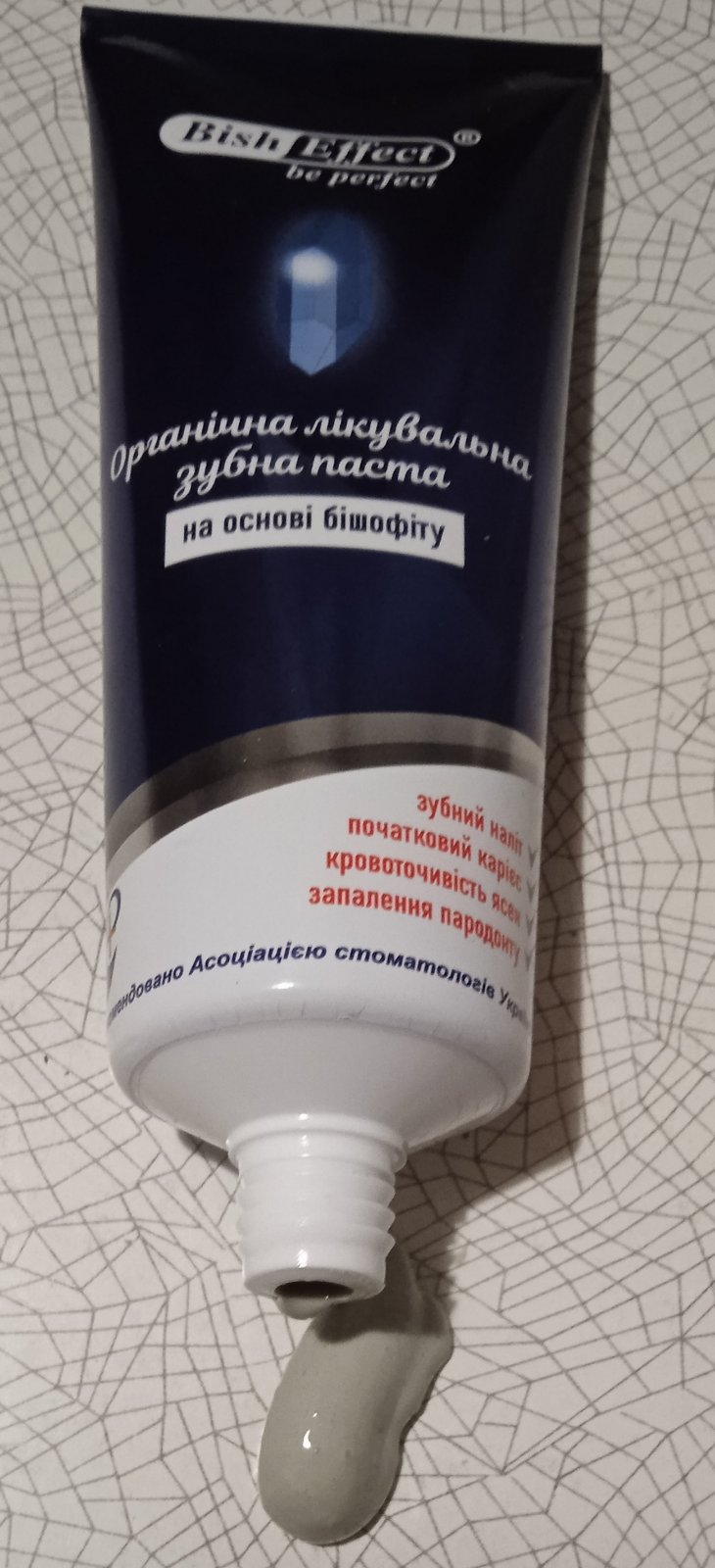 "Bisheffect" – зубна паста на основі природного мінералу бішофіт, що підходить для щоденного догляду за ротовою порожниною. Сприяє дбайливому очищенню зубів, надає відчуття свіжості та комфорту. Продукт одобрено ГО «Асоціація Стоматологів України».