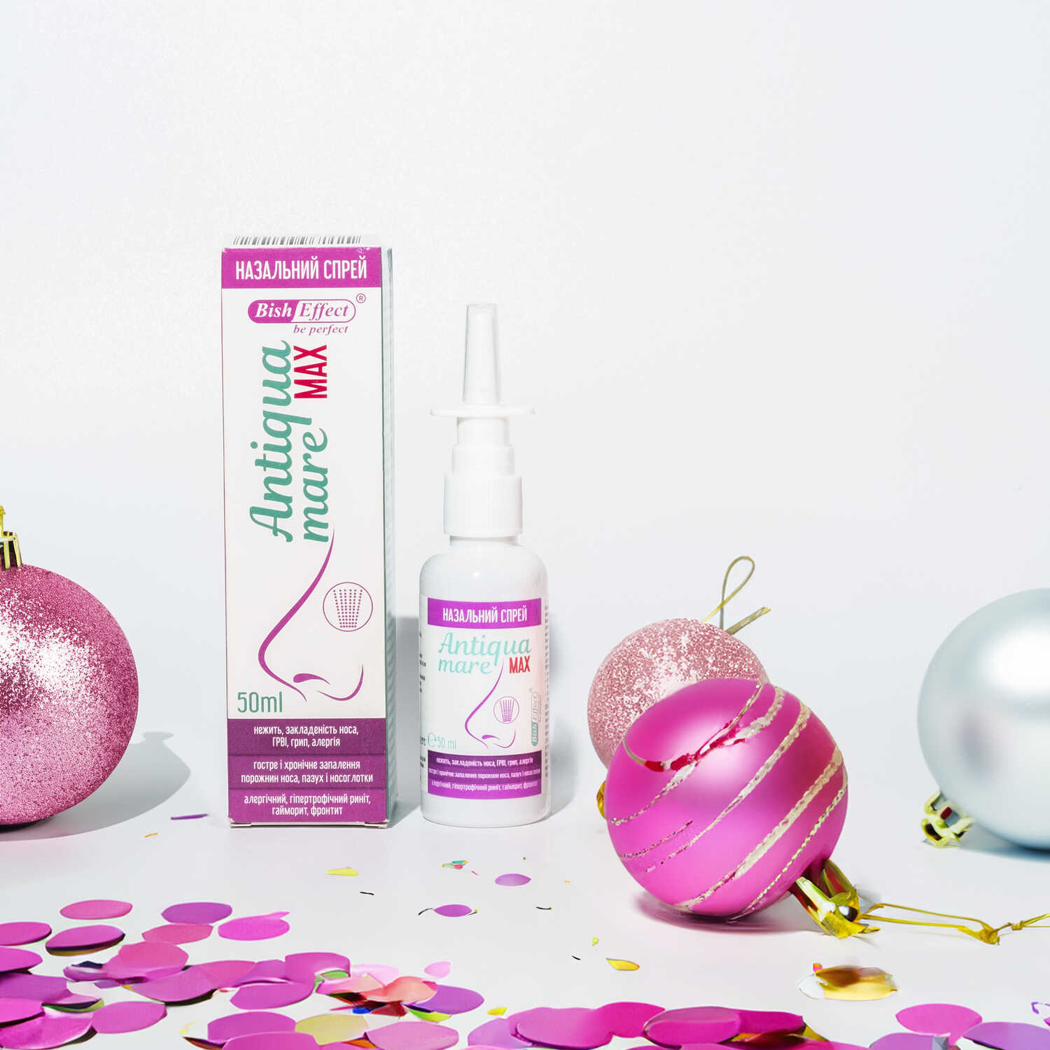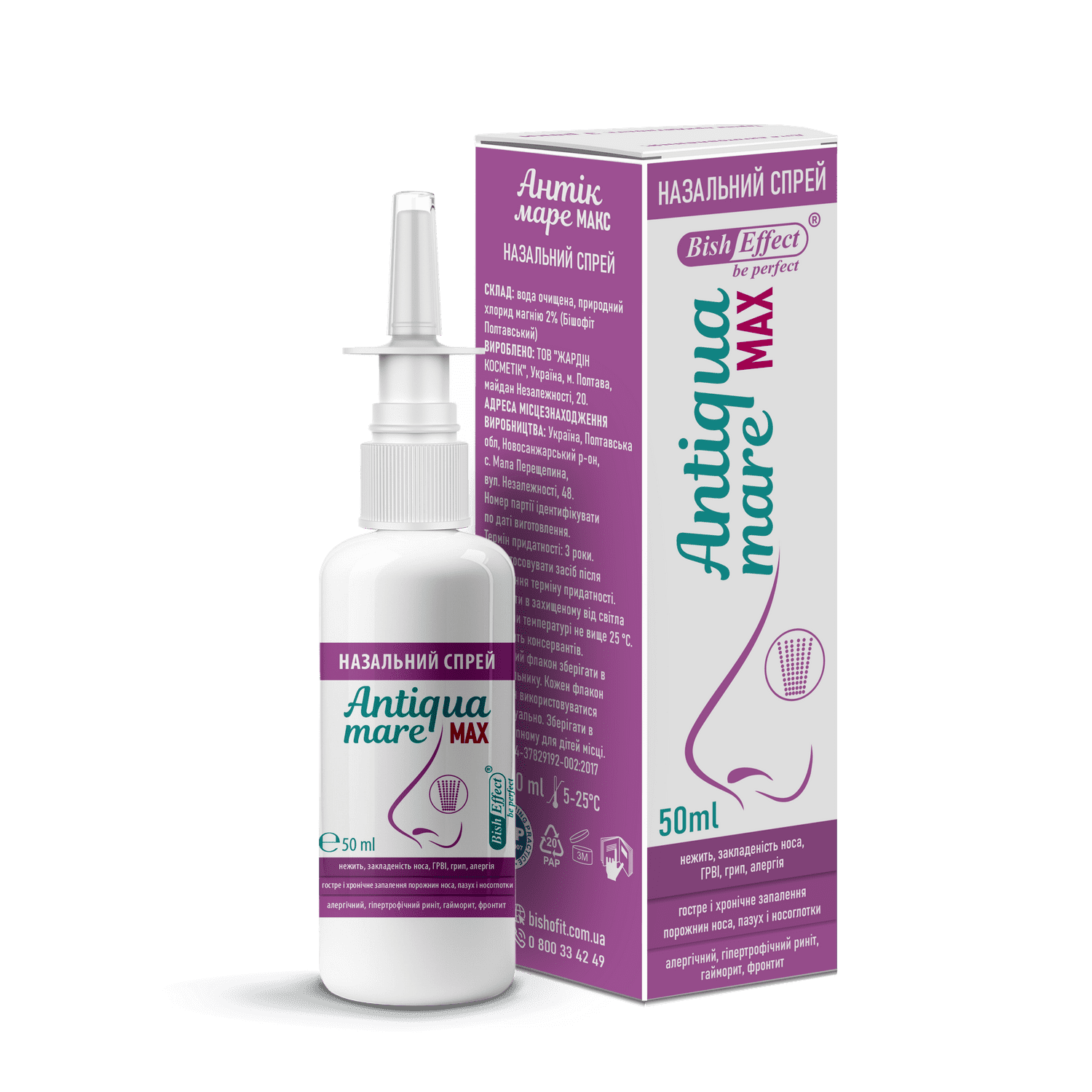 Бішофіт Antiqua Mare MAX можна застосовувати і як спрей для носа від алергії. Він відмінно знімає набряклість в результаті попадання на слизову оболонку дратівливих алергенів.