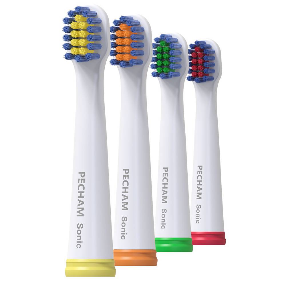 Насадки для зубних щіток PECHAM сумісні з електрощітками цього бренду. Корпус насадок виготовлений з якісного пластику ABS/TP, а нейлонові щетинки синього кольору мають індикатори, які змінюють колір при повному зношенні.